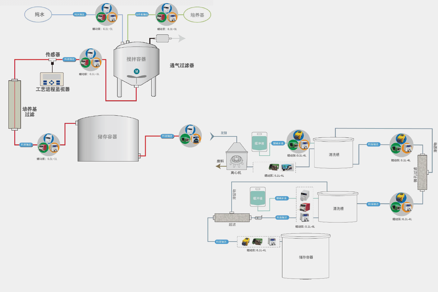 应用场景:培养基输送、补料添加、细胞接种、收获液转移、深层过滤等。
